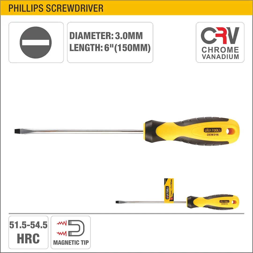 UYUS DESTORNILLADOR PLANO CON MANGO TPR (PUNTA IMÁNTADA) – 3X150MM