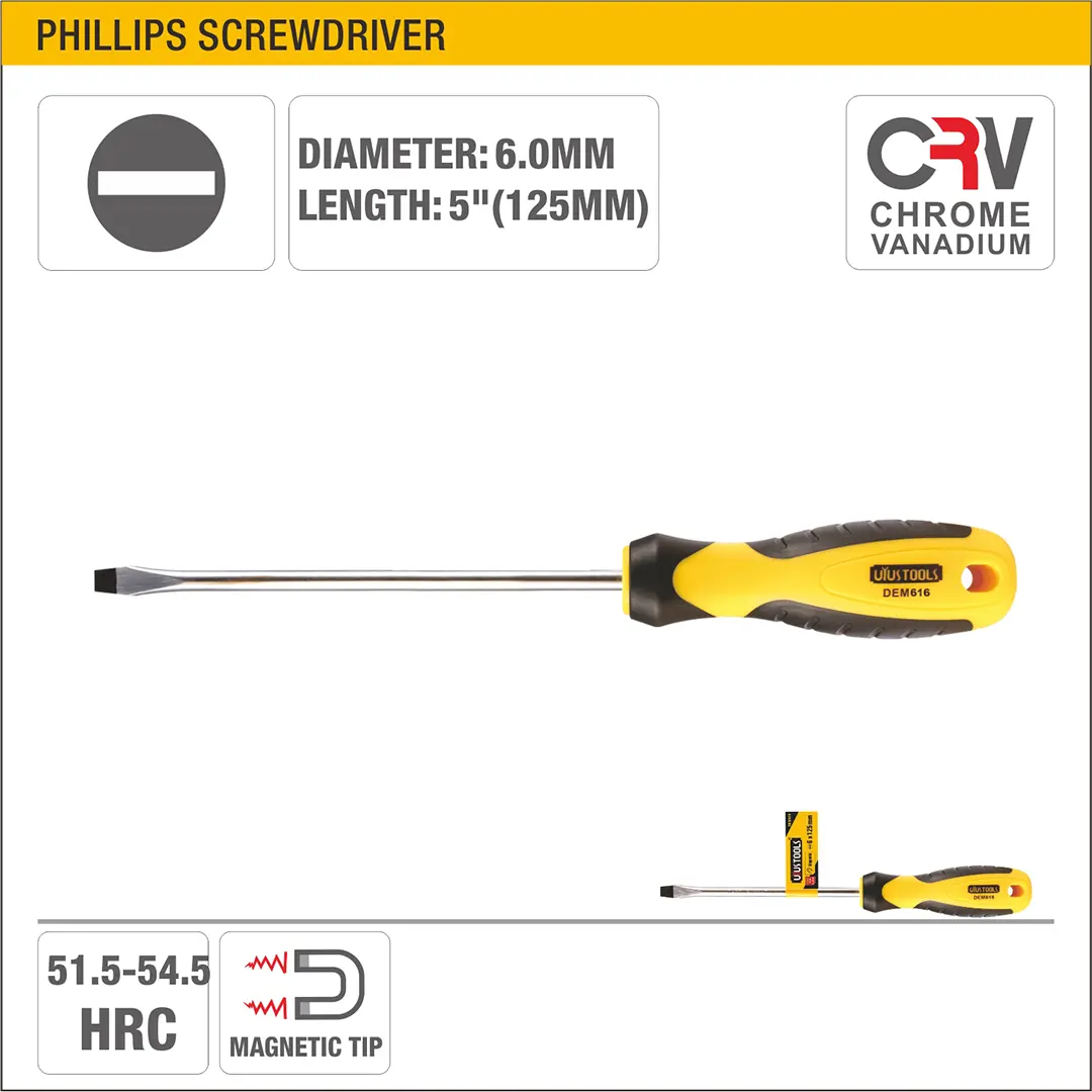UYUS DESTORNILLADOR PLANO CON MANGO TPR (PUNTA IMÁNTADA) – 6X125MM