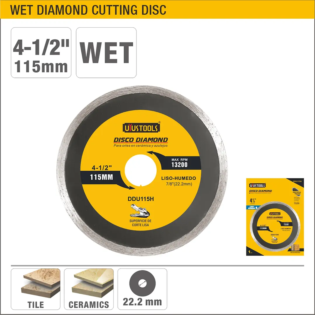 UYUS DISCO DE CORTE DE DIAMANTE LISO-HÚMEDO – 4-1/2″(115MM);7/8″(22.2MM)