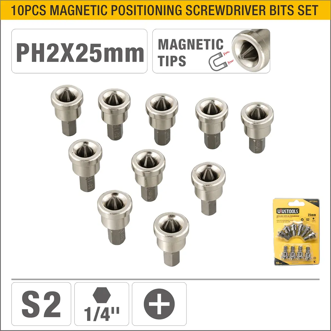 UYUS JUEGO DE 10 PCS DE PUNTA ESTRELLA INTERCAMBIABLES PARA DESTORNILLADOR CON TOPE DE PROFUNDIDAD – PH2X25MM
