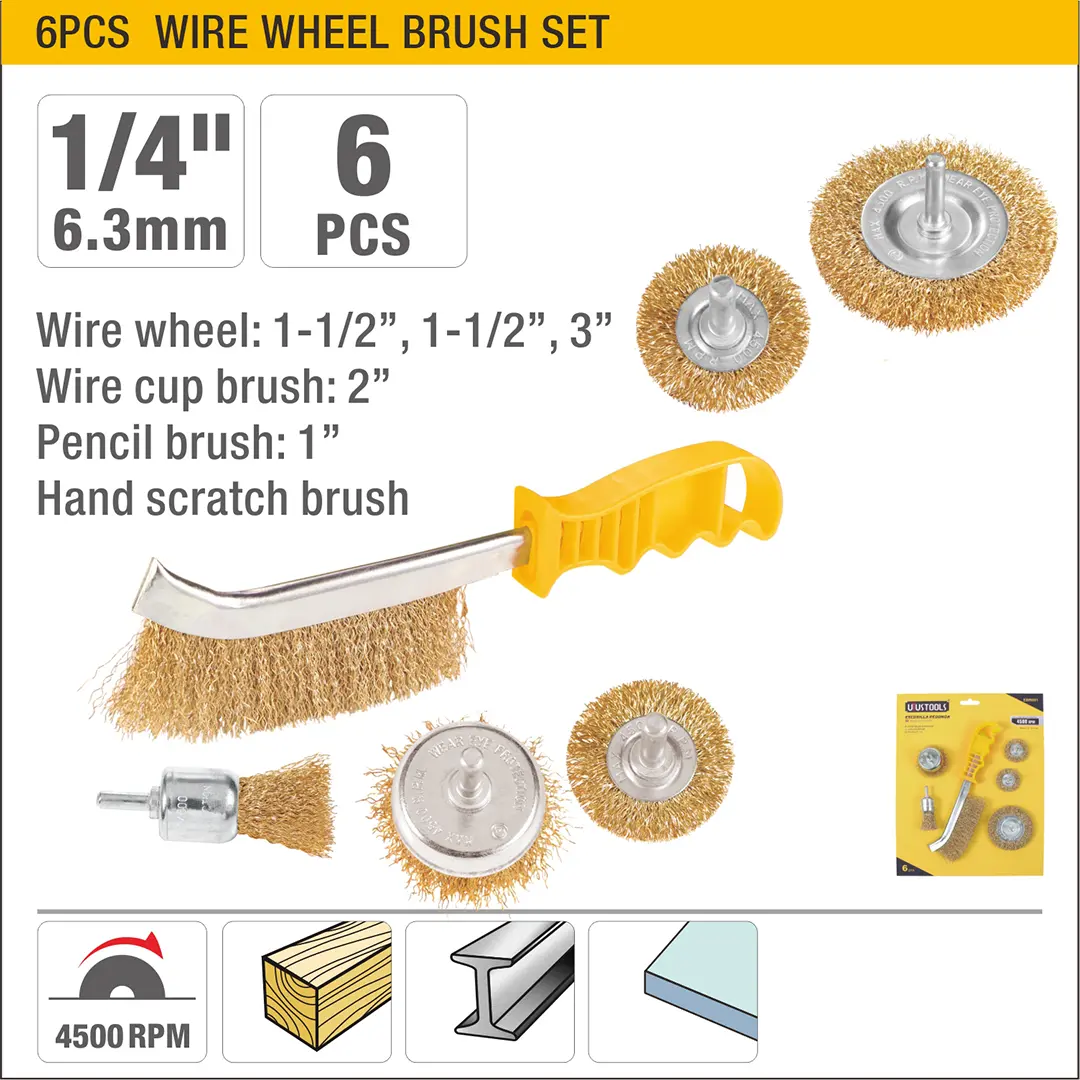 UYUS JUEGO DE 6 PCS DE CEPILLOS DE ALAMBRE EN COPA CON MANGO – 1/4″