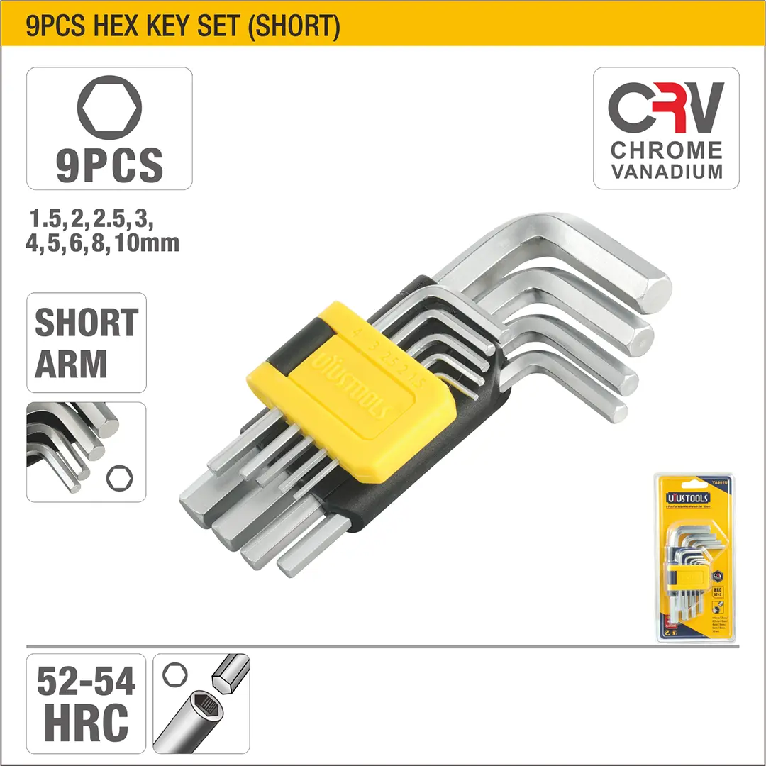 UYUS JUEGO DE 9 PCS DE LLAVES HEXAGONALES DE CABEZA PLANA (CORTO) - 1.5MM, 2MM, 2.5MM, 3MM, 4MM, 5MM, 6MM, 8MM, 10