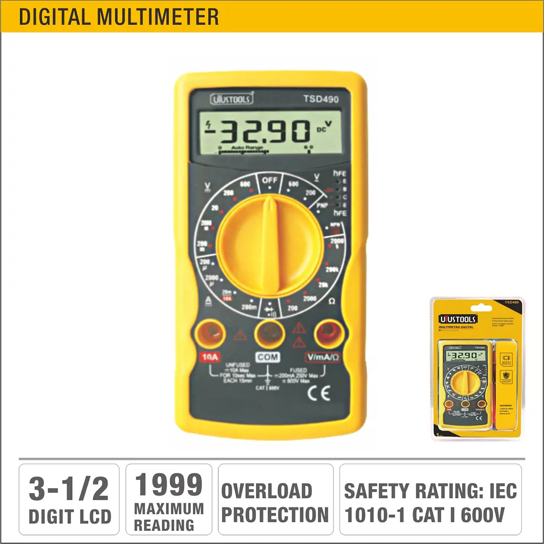 2. LCD de 3 ½ dígitos, lectura máxima 1999