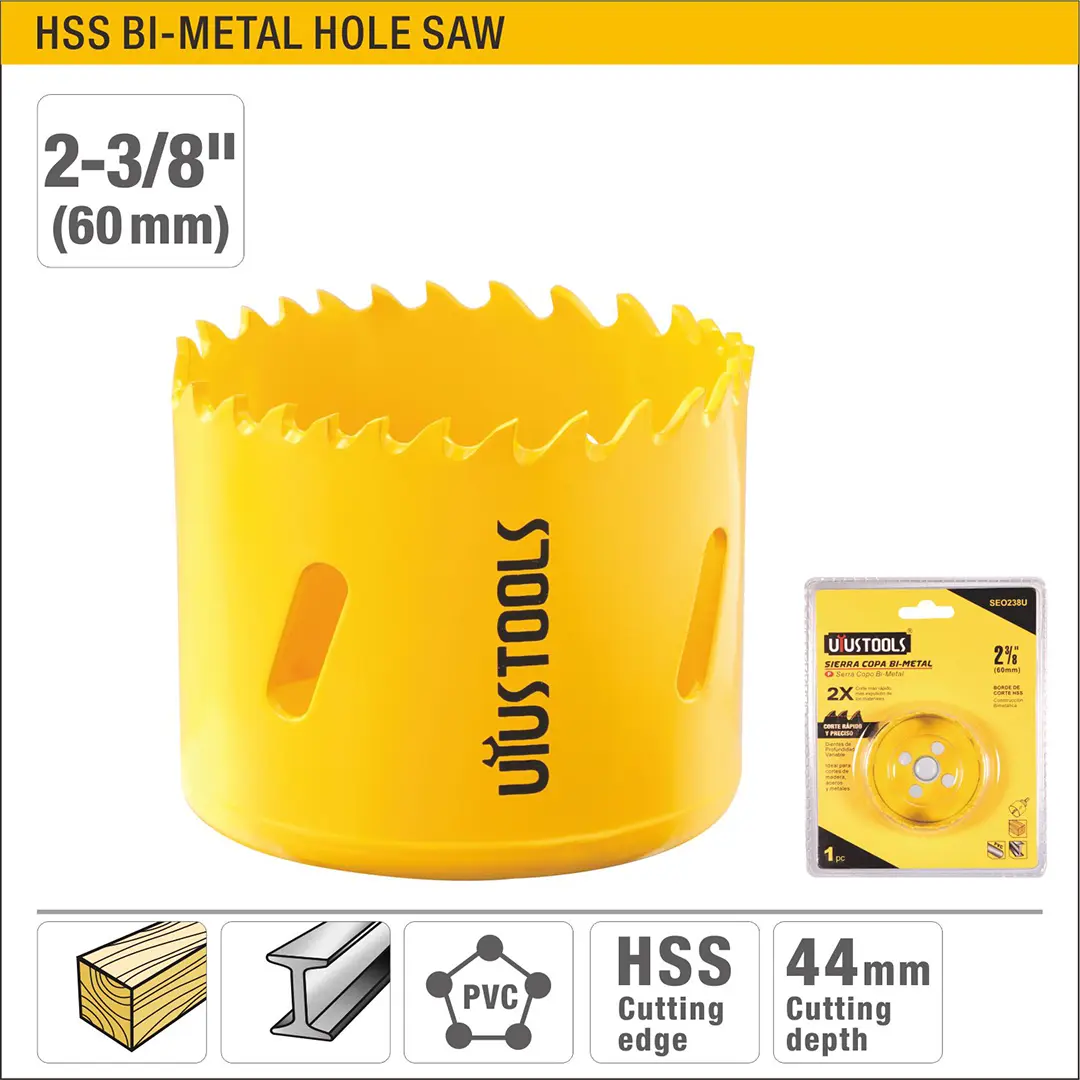 Inicio Shop ACCESORIOS DE HERRAMIENTAS ELÉCTRICAS SIERRAS UYUS SIERRA DE COPA (SACABOCADO) BI-METAL – 2-3/8″(60MM)