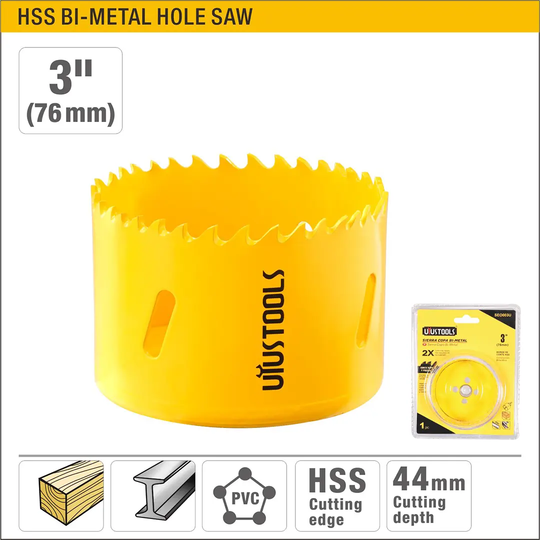 Inicio Shop ACCESORIOS DE HERRAMIENTAS ELÉCTRICAS SIERRAS UYUS SIERRA DE COPA (SACABOCADO) BI-METAL – 3″(76MM)